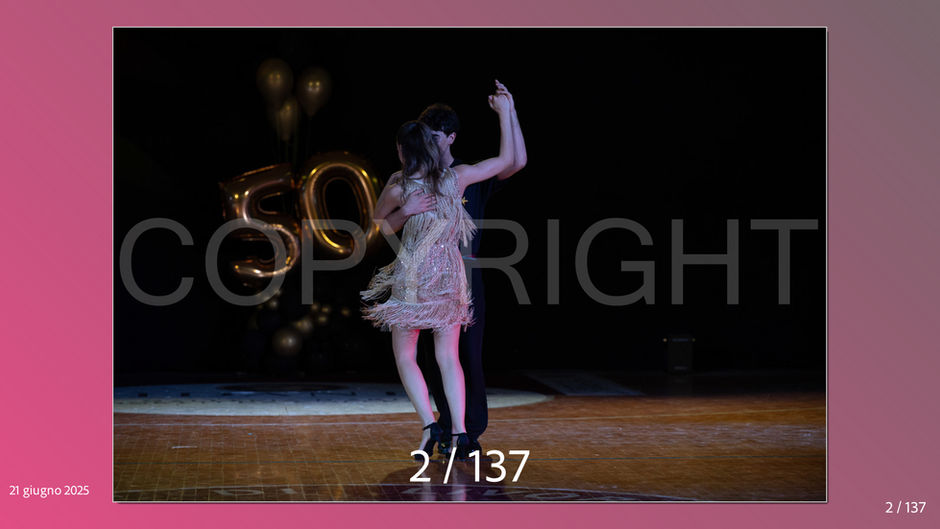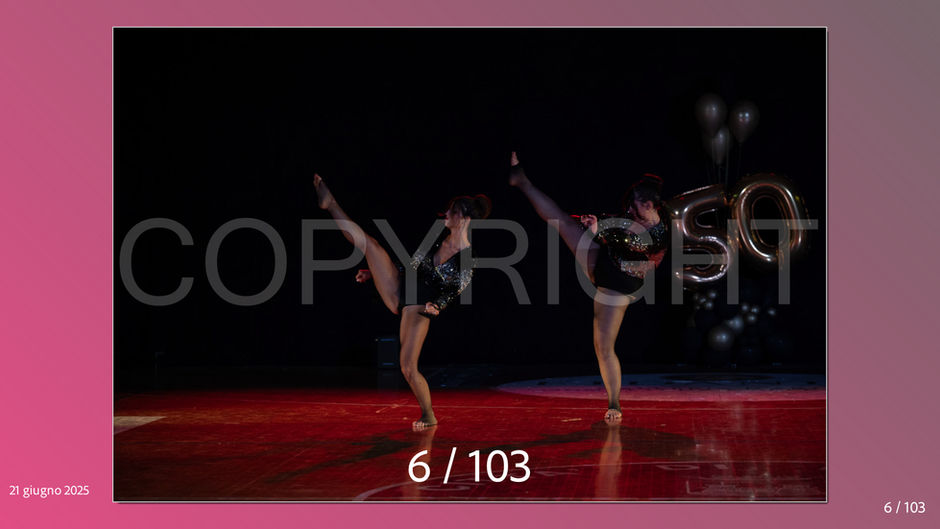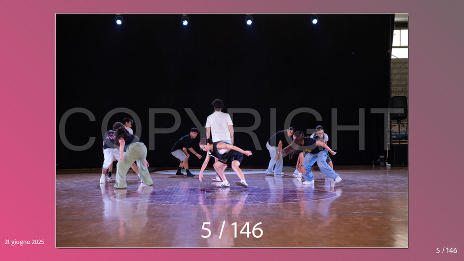 IT30M3608105138248420848423 con causale i numeri delle foto scelte con rispettivo nome della coreografia. Le foto richieste saranno inviate per email tramite WETRANSFER.